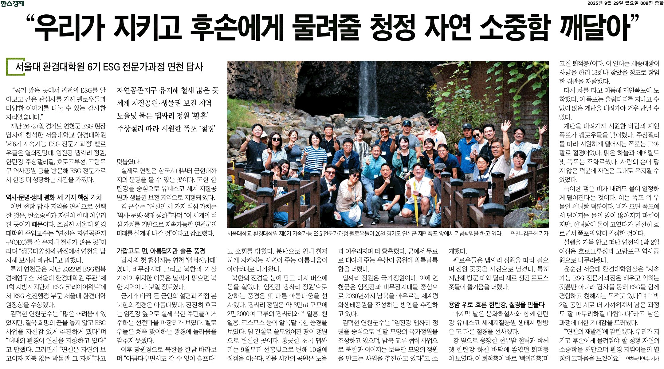 [지면보도]"우리가 지키고 후손에게 물려줄 청정 자연 소중함 깨달아"
