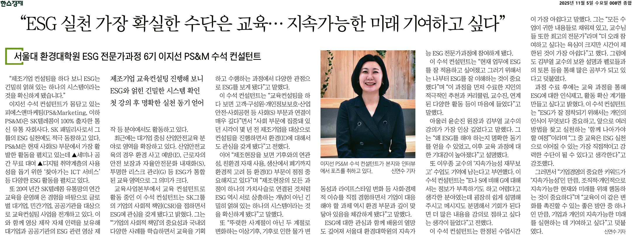 한스경제 릴레이 인터뷰 보도 (이지선 펠로우)