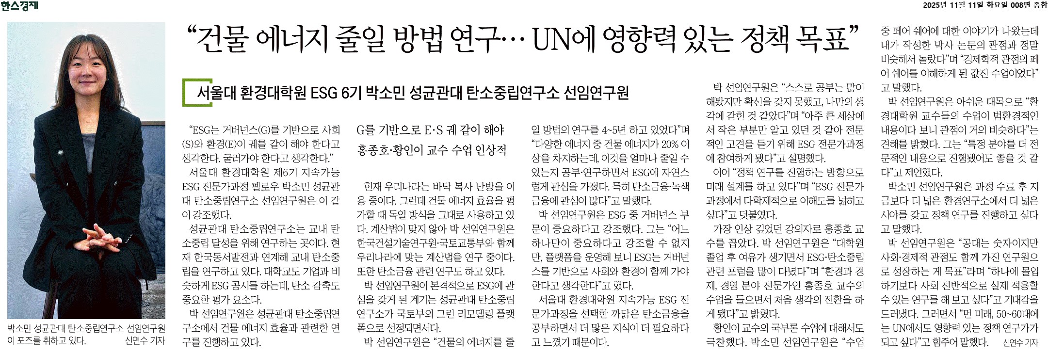 한스경제 릴레이 인터뷰 보도 (박소민 펠로우)