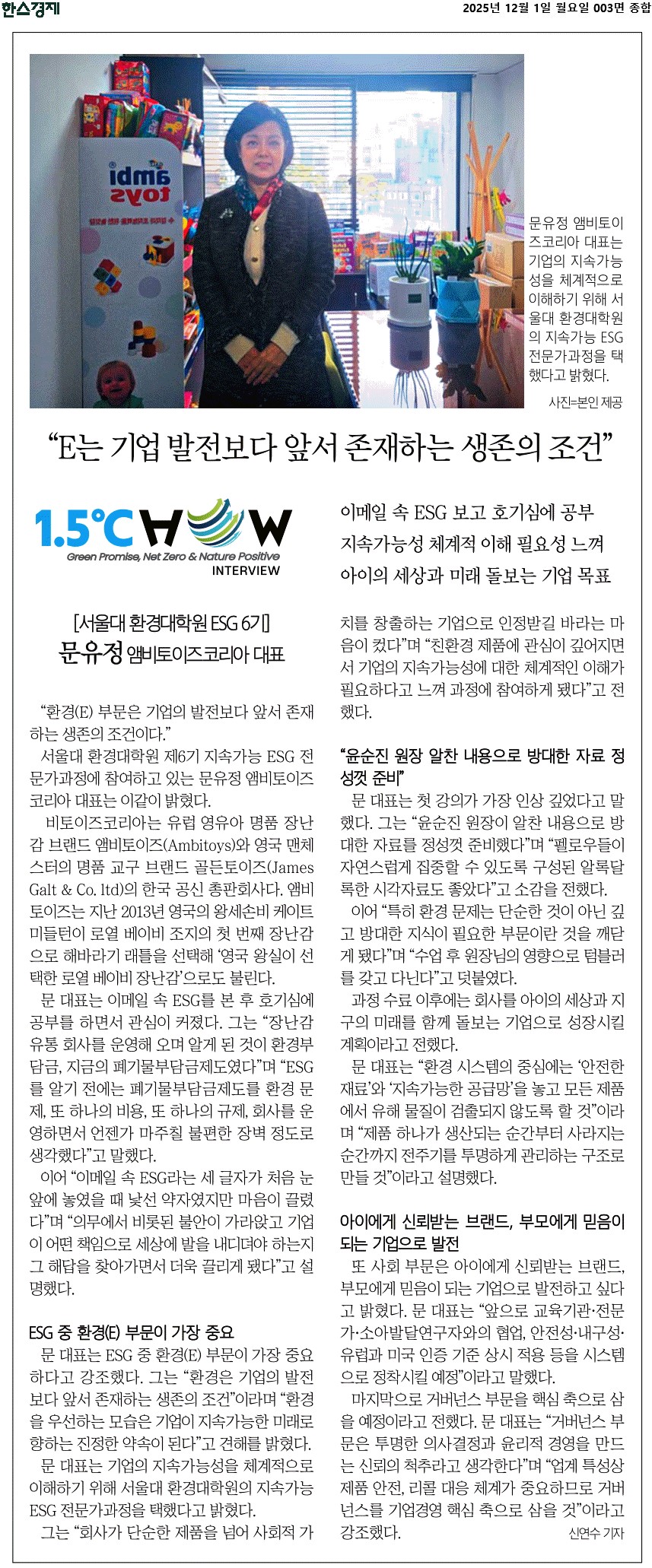 한스경제 릴레이 인터뷰 보도 (문유정 펠로우)