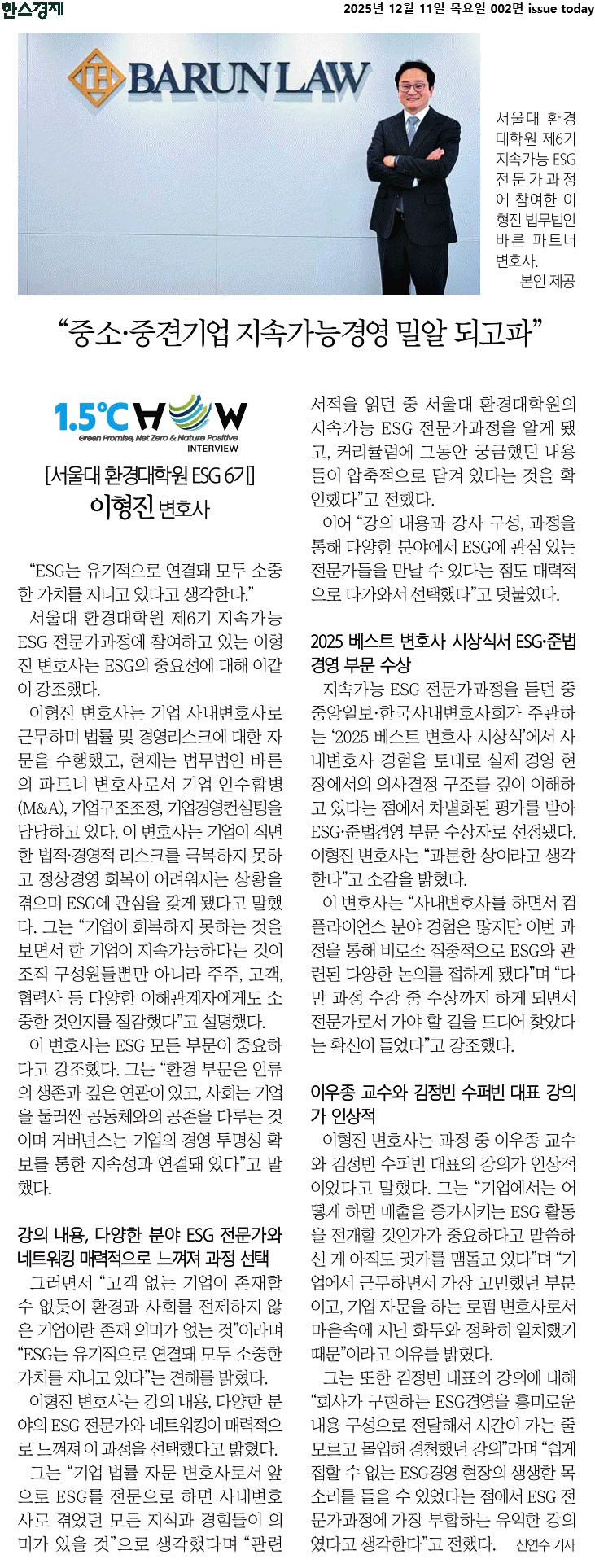한스경제 릴레이 인터뷰 보도 (이형진 펠로우)