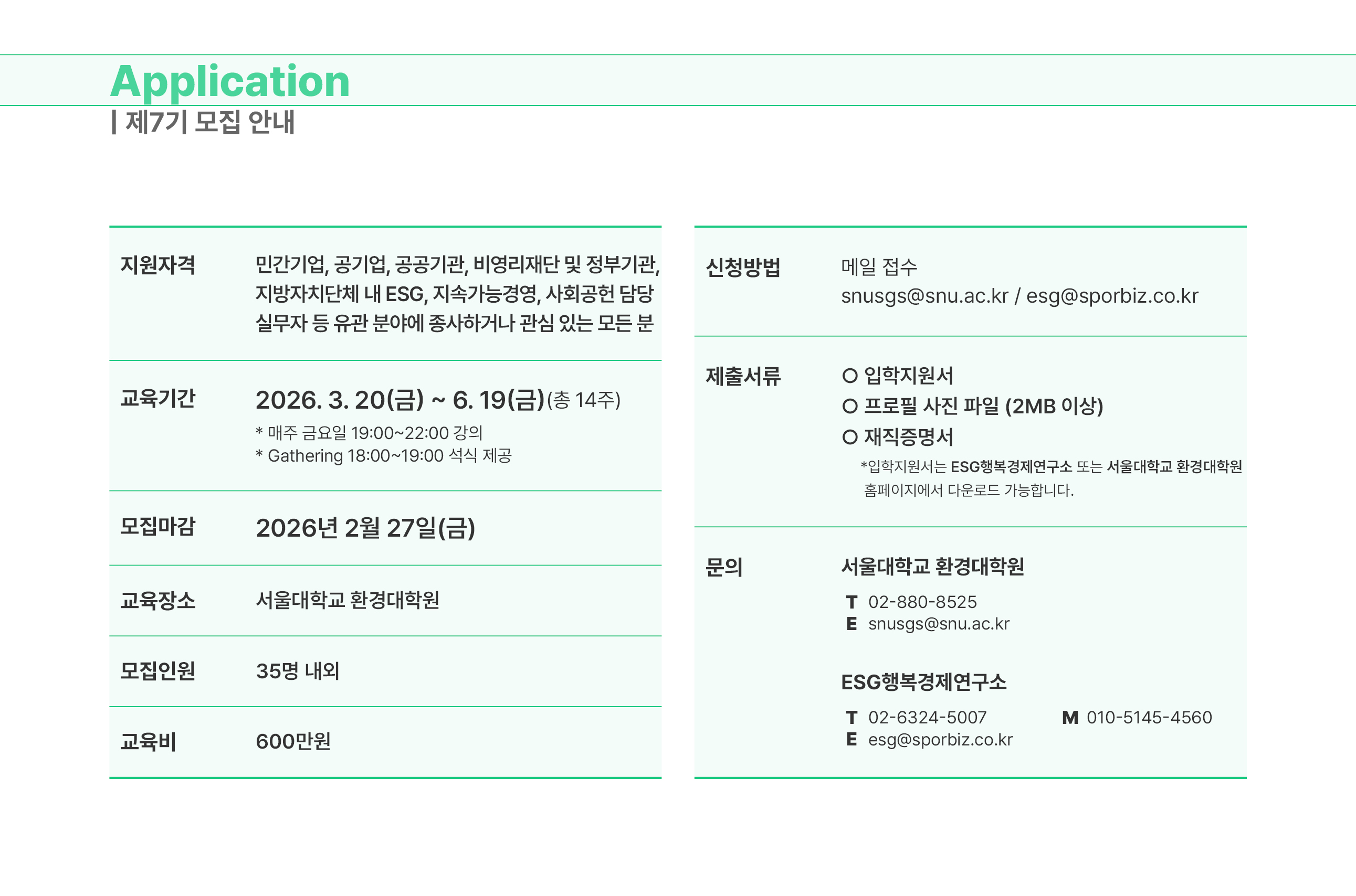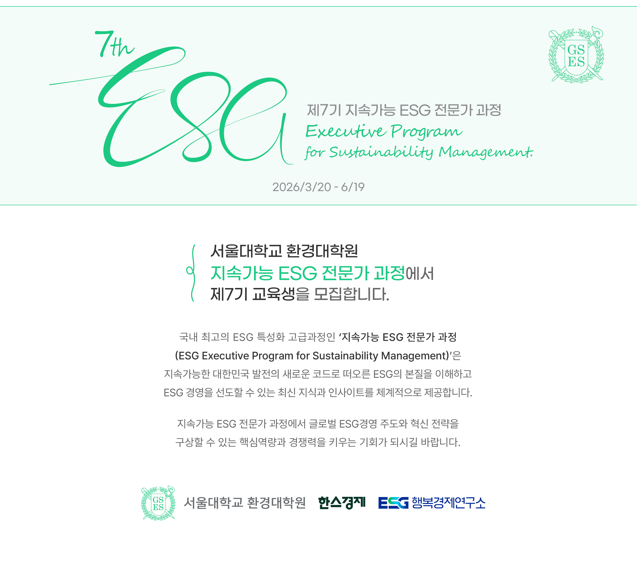 ‘제7기 지속가능 ESG 전문가과정’ 교육생을 모집합니다.