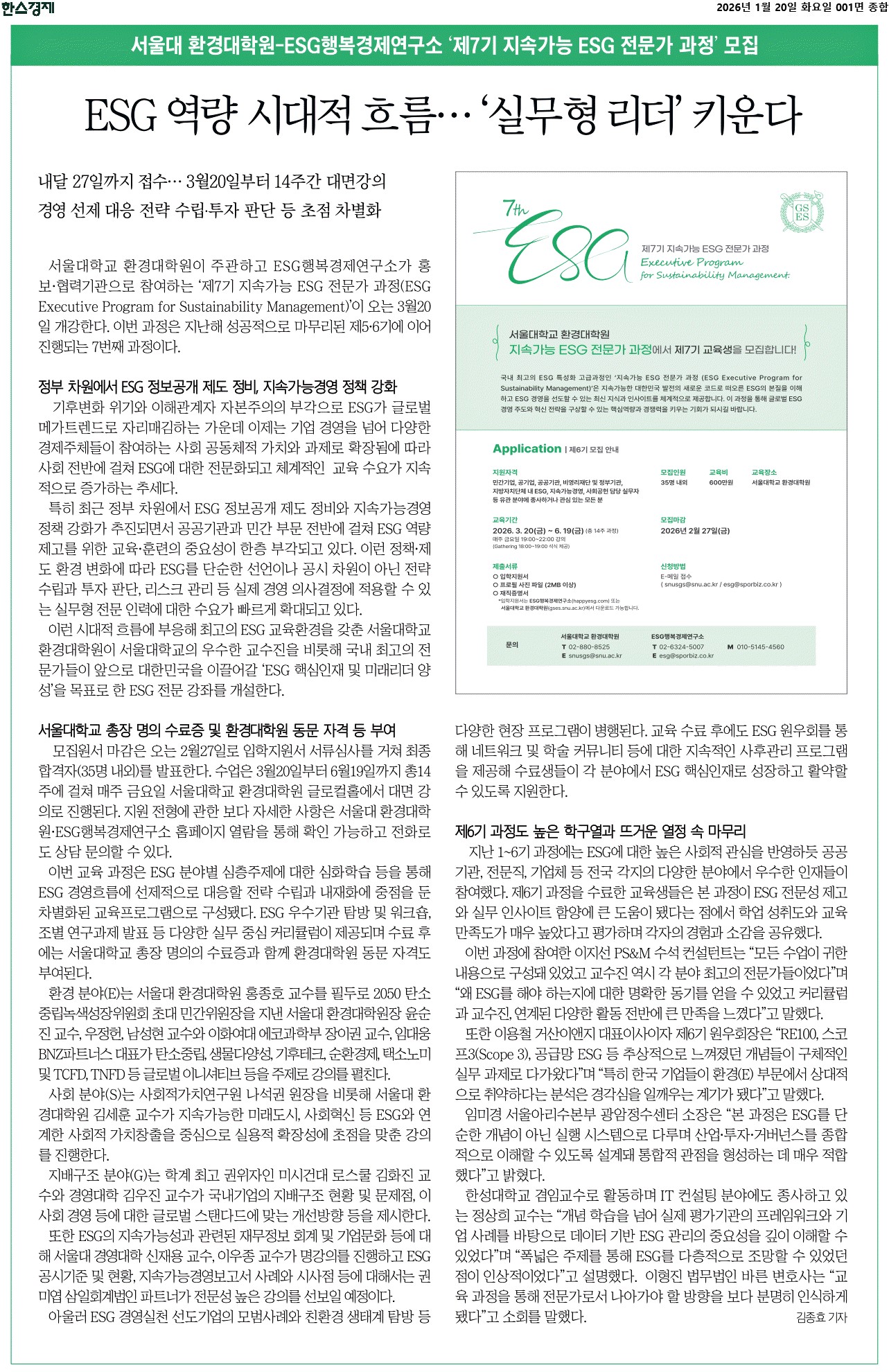 [제7기 지속가능 ESG 전문가과정] 교육생을 모집합니다.