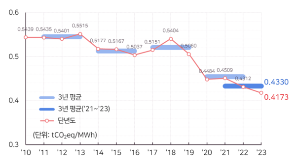 그간 정부는 온실가스 배출권거래제 등에 활용하기 위해 3년 주기로 3년 평균의 전력배출계수를 공표해왔다.