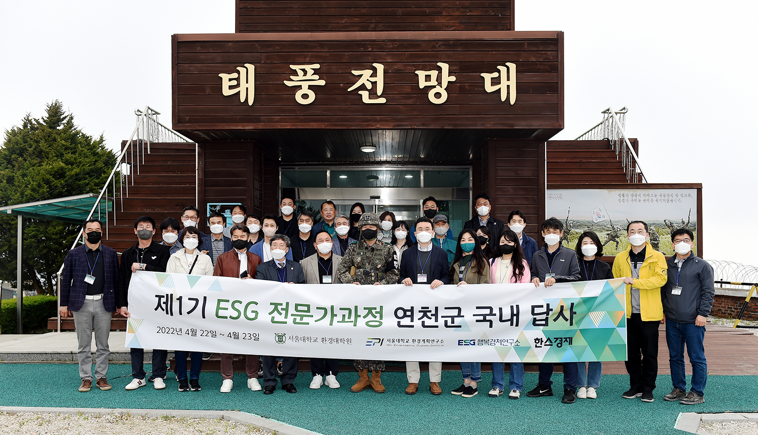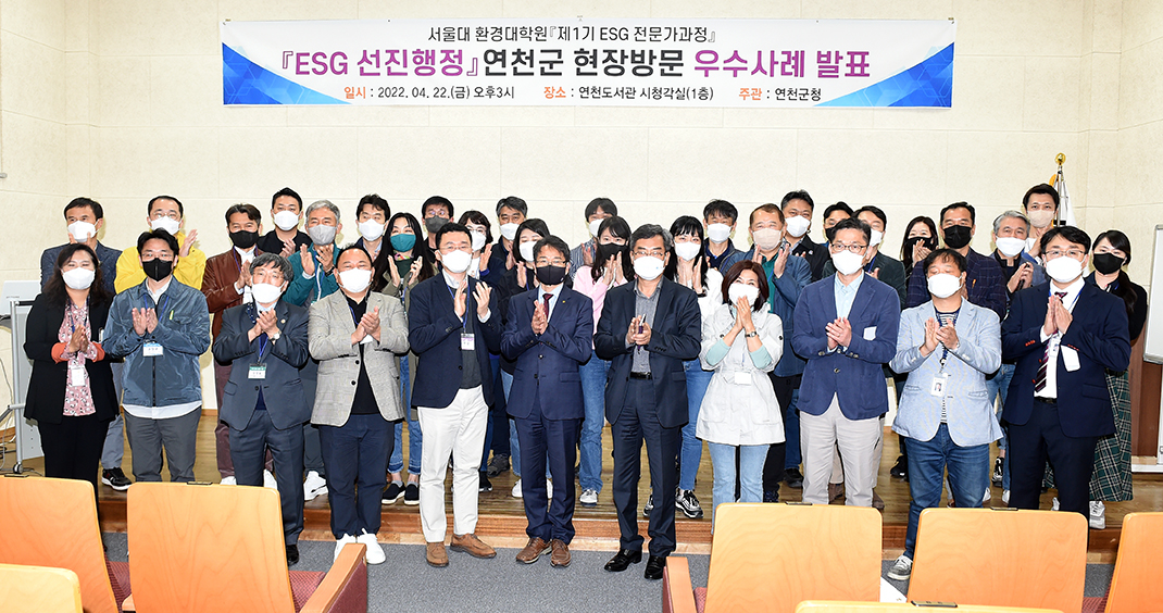 연천군에 방문하여 기념촬영을 하고 있는 펠로우들