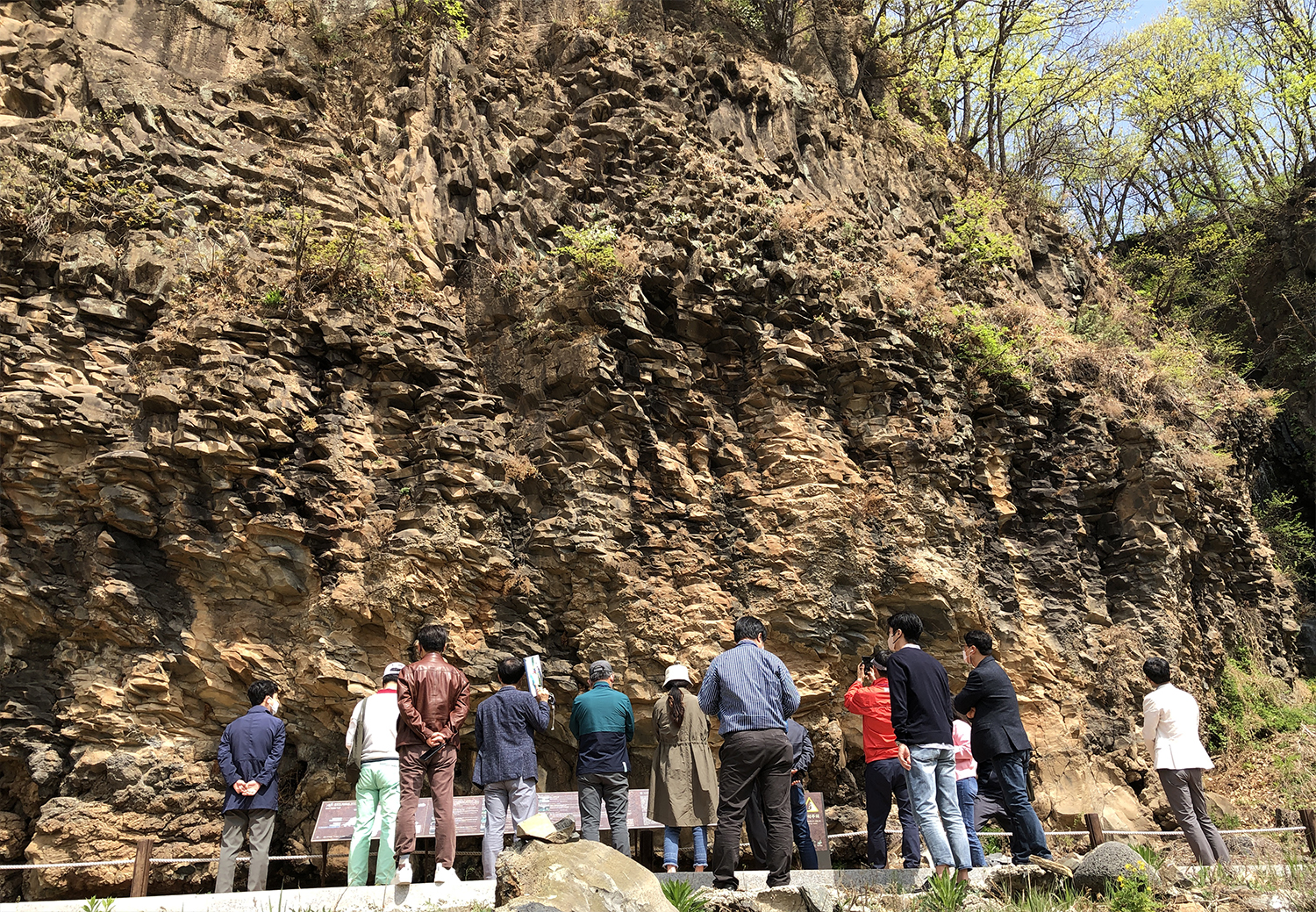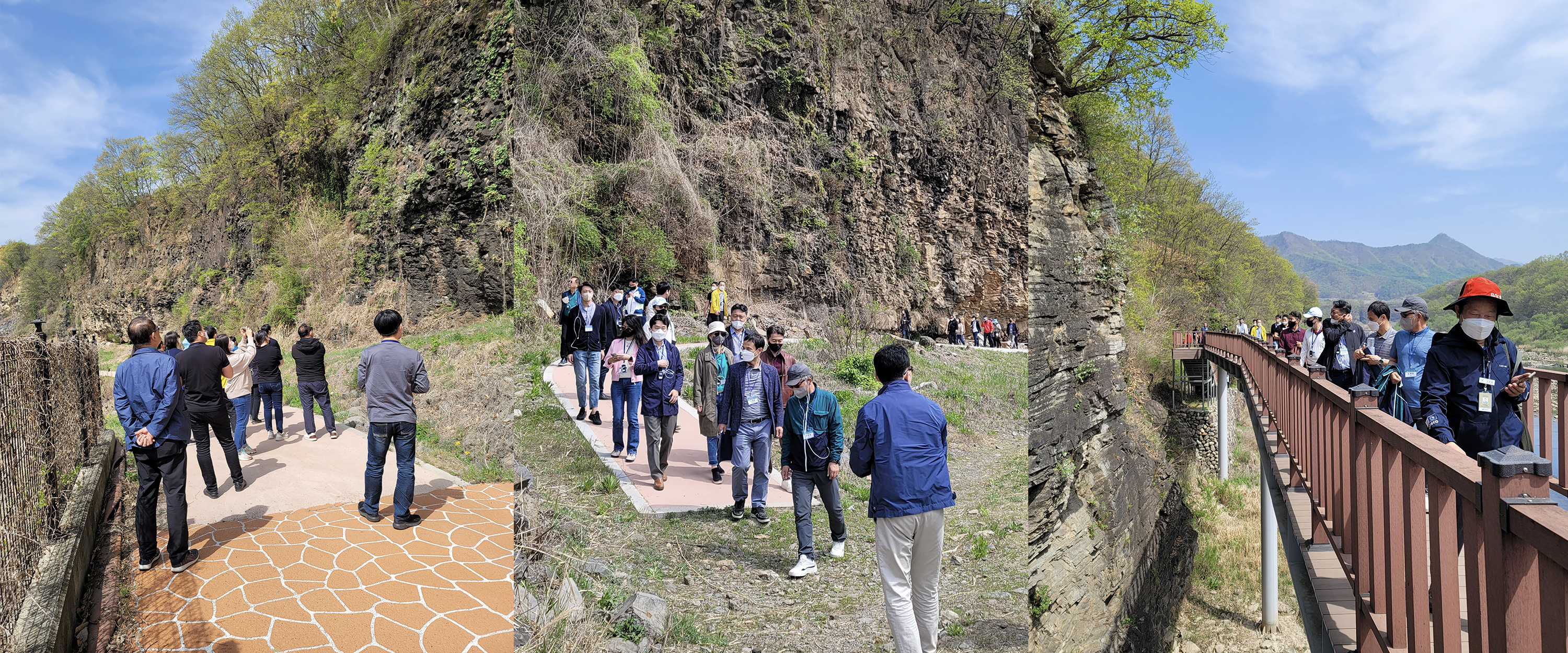 백의리층 지질구간을 탐방하고있는 펠로우들