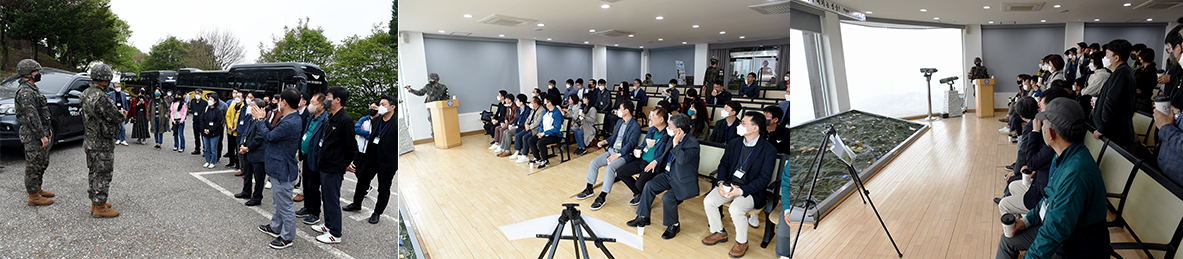 태풍전망대를 방문하여 연천군 북측사업지역(DMZ탄소중립특구)을 살펴보고 있는 펠로우들