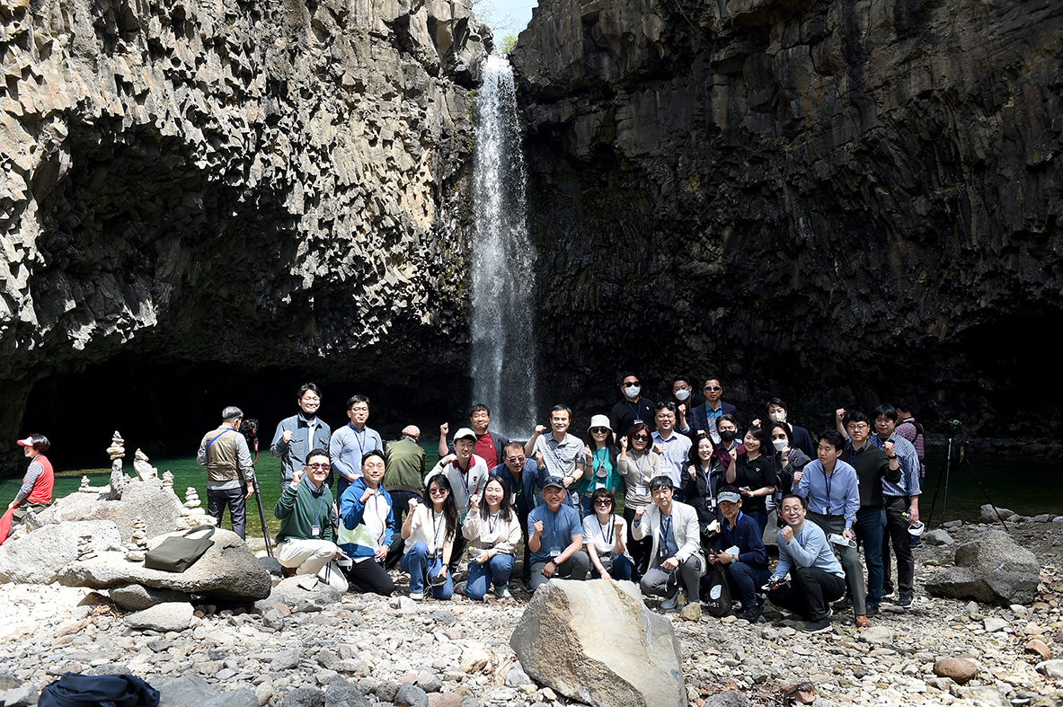 1박 2일의 국내연수를 마무리하며 재인폭포에서 마지막 단체사진