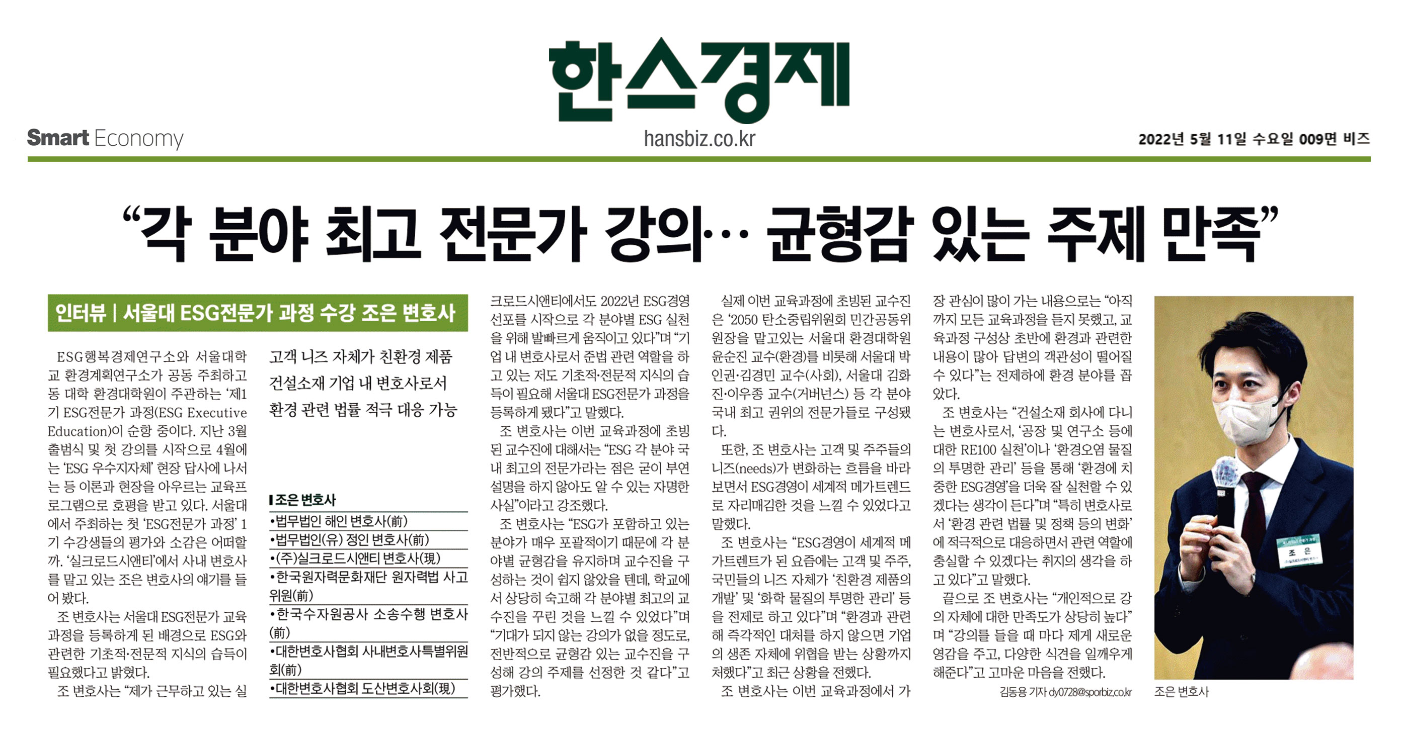 한스경제 릴레이 인터뷰 보도 (조은 펠로우)