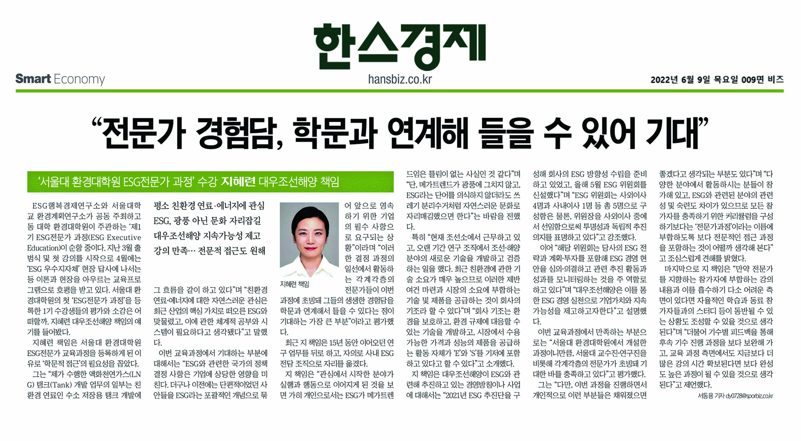한스경제 릴레이 인터뷰 보도 (지혜련 펠로우)
