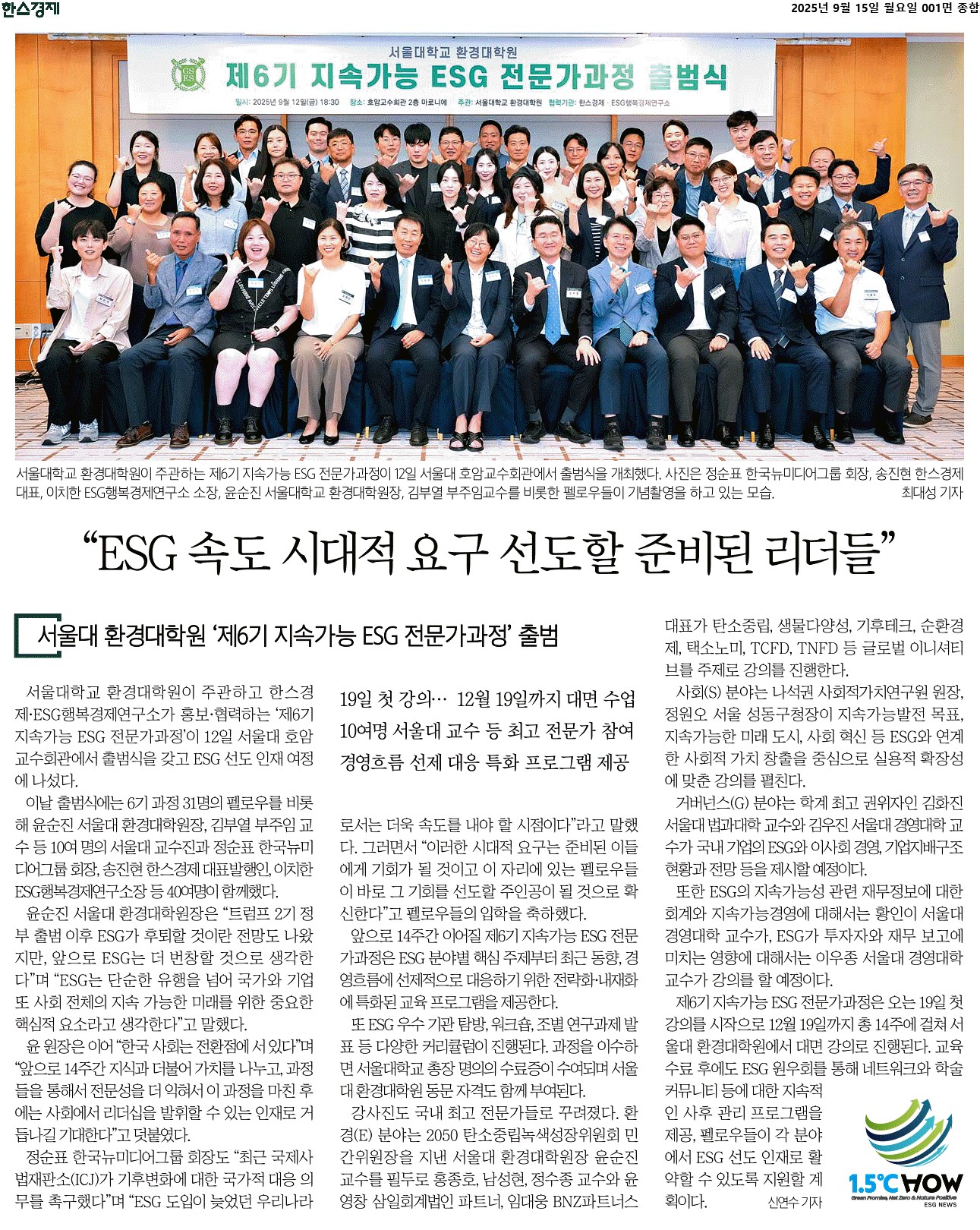 제6기 지속가능 ESG전문가과정 출범식 개최