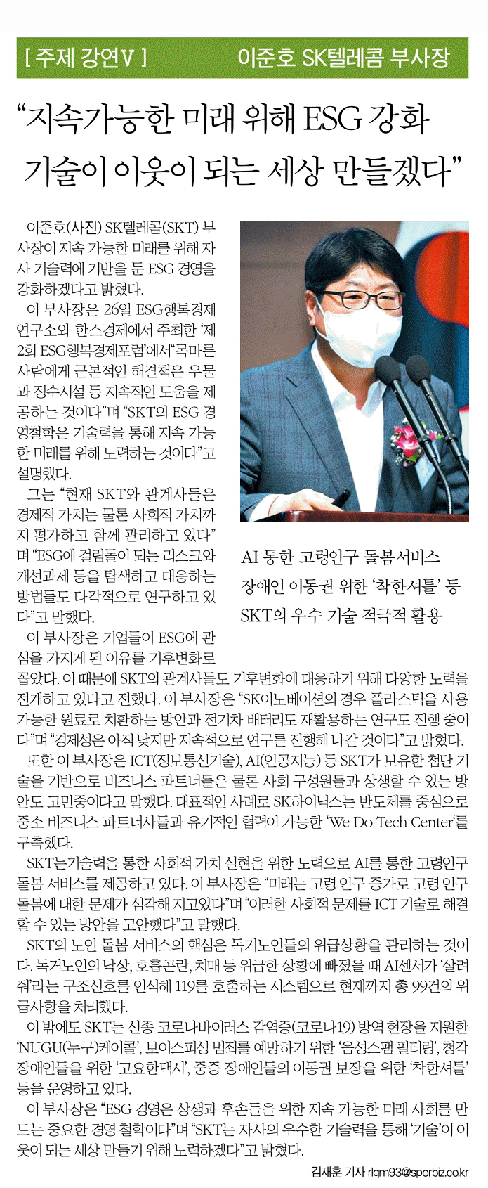 이준호 SK텔레콤 부사장 주제강연 "SK의 ESG"