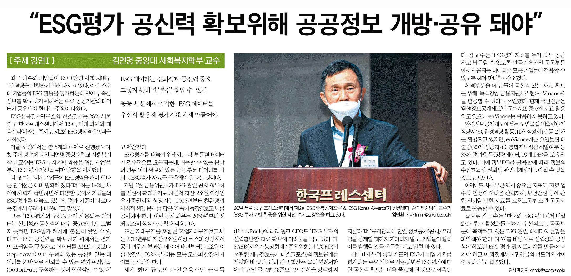 김연명 중앙대학교 교수 주제강연 "ESG 투자활성화를 위한 제언"